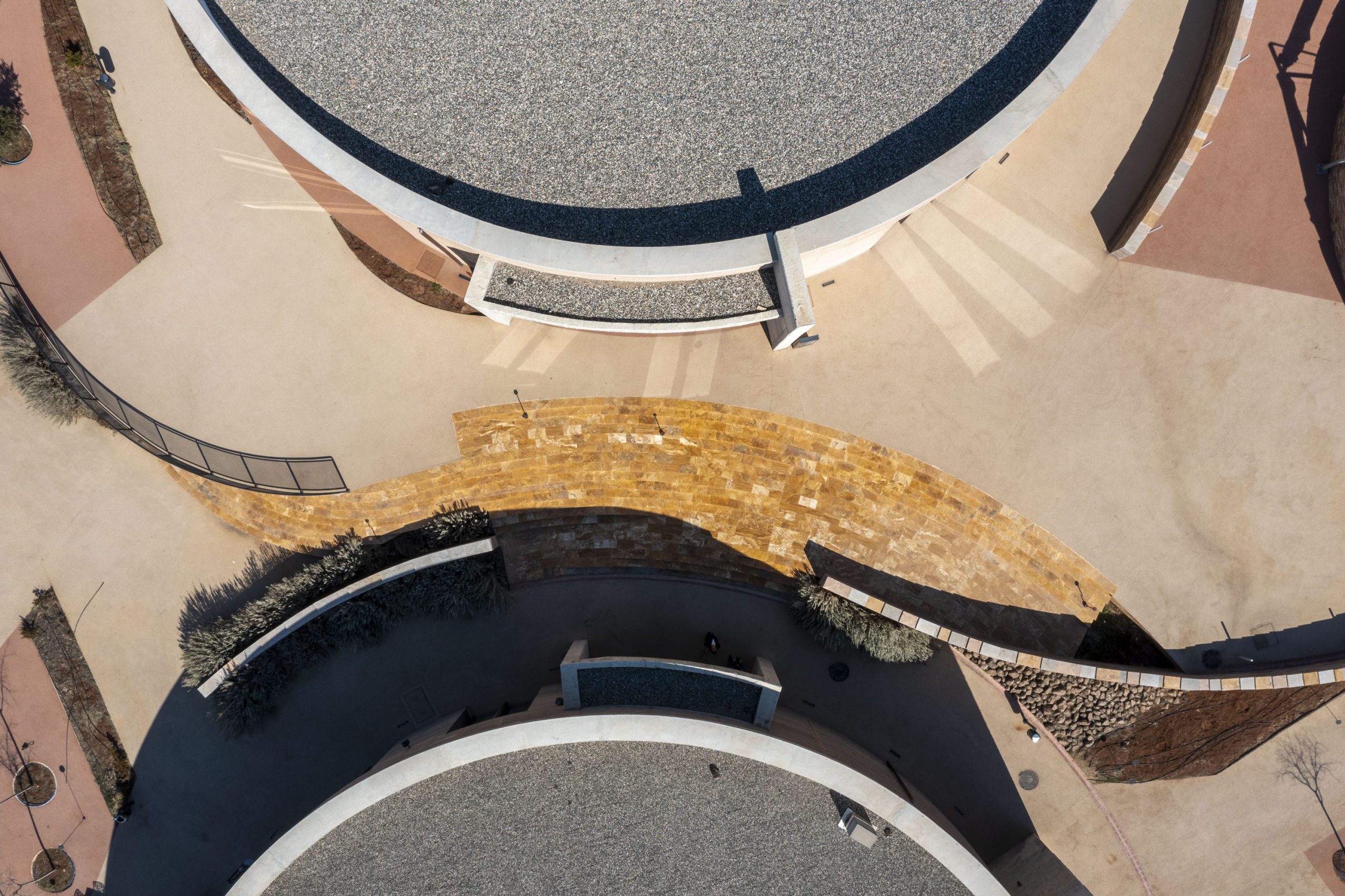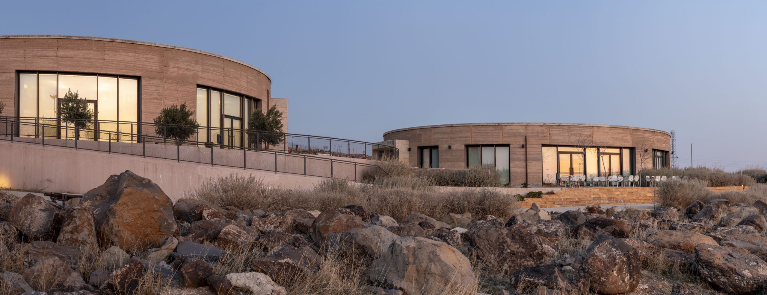 Biri ziyaretçilere açık iki ana hacimden ve peyzaj düzenlemesinden oluşan projenin plan şemasının ilham kaynağı Göbeklitepe yapılarının ortaya çıkartılan bölümlerindeki dairesel planlı tapınaklar oldu. Bu dairesel tek katlı hacimler için sıkıştırılmış toprak duvar tekniği tercih edildi. Bu sayede malzeme bakımından yapıların bulunduğu yerle ve yerel kerpiç yapı teknolojisi ile uyumlu olması sağlandı.